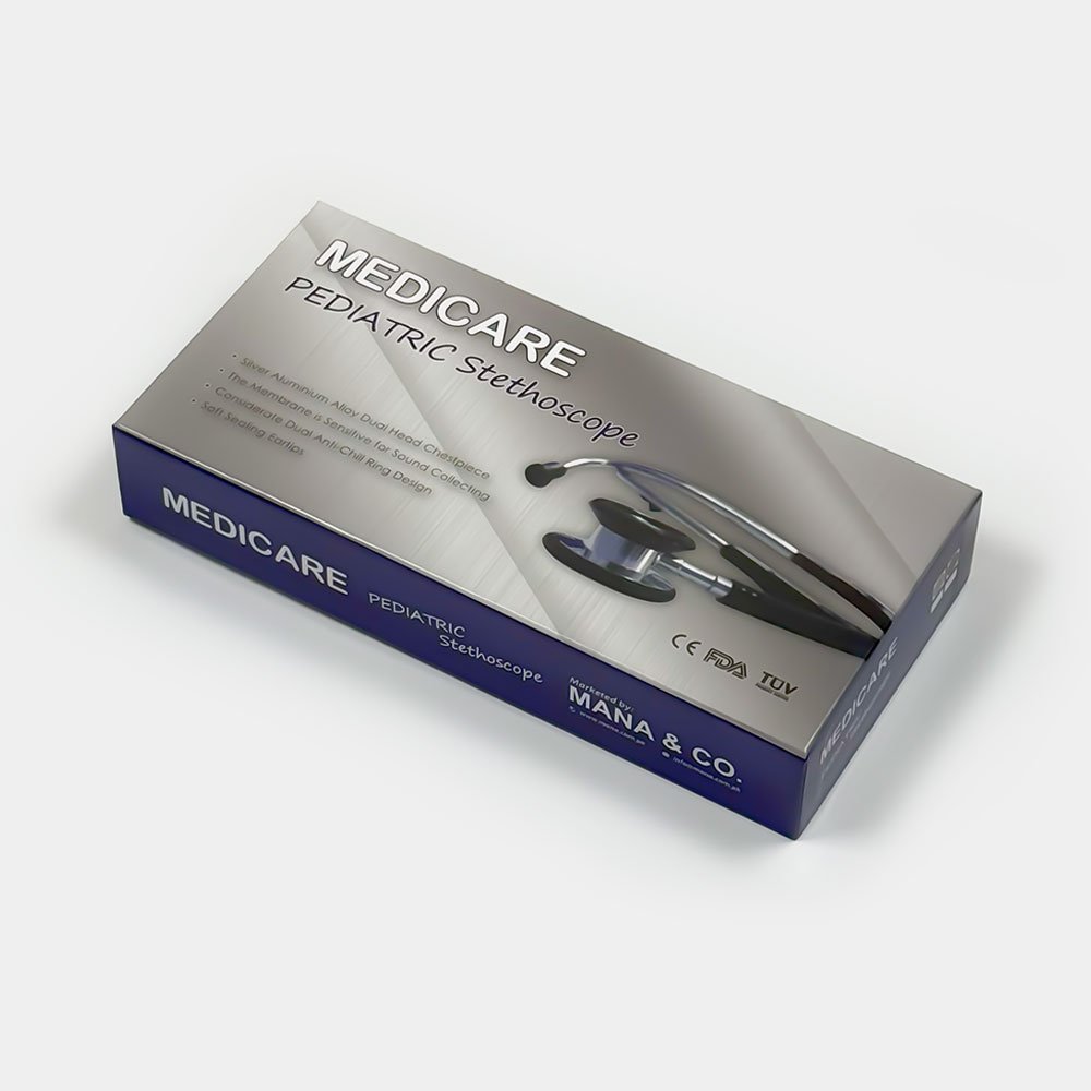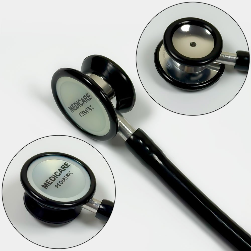 The Medicare Pediatric Stethoscope is specially designed for clear and accurate auscultation in infants and children. Featuring a small, sensitive chest piece, it ensures precise sound transmission for heart, lung, and abdominal examinations. Its lightweight structure and soft ear tips provide comfort for healthcare professionals during long working hours.